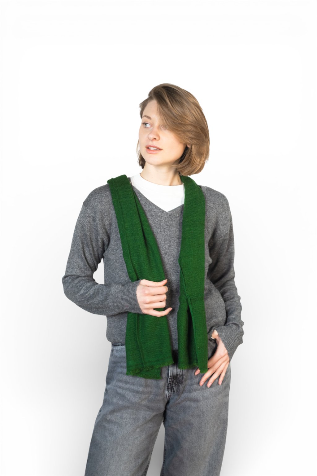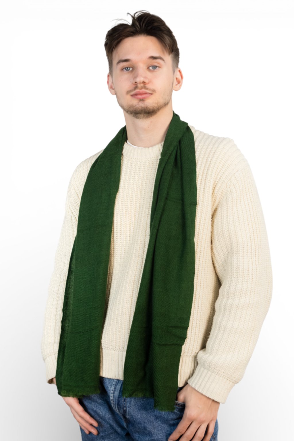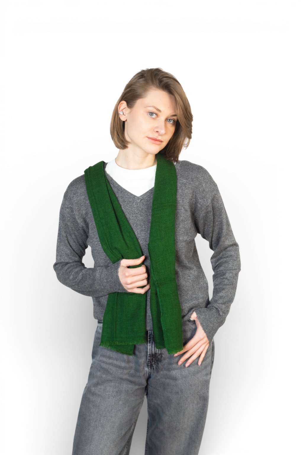 Jemná, zelená šála ze 100% kašmíru upletená z 4 vrstev, které zajistí lehkost a hřejivost. Nejjemnější, dlouhá vlákna se starají o opravdu heboučký a měkký pocit a zajistí, že šála nebude časem chlupatět, bude držet tvar a skvěle padne kolem krku. Vhodná pro muže i ženy.